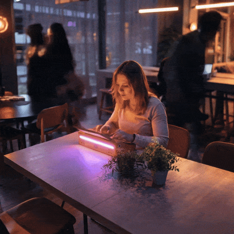 Rear LED bar: integrated pulsating light strip along the back edge Focus Mode: slow breathing pulse while you are in session Idle: steady glow that acts as a low distraction session timer and progress cue without throwing pop ups on screen |