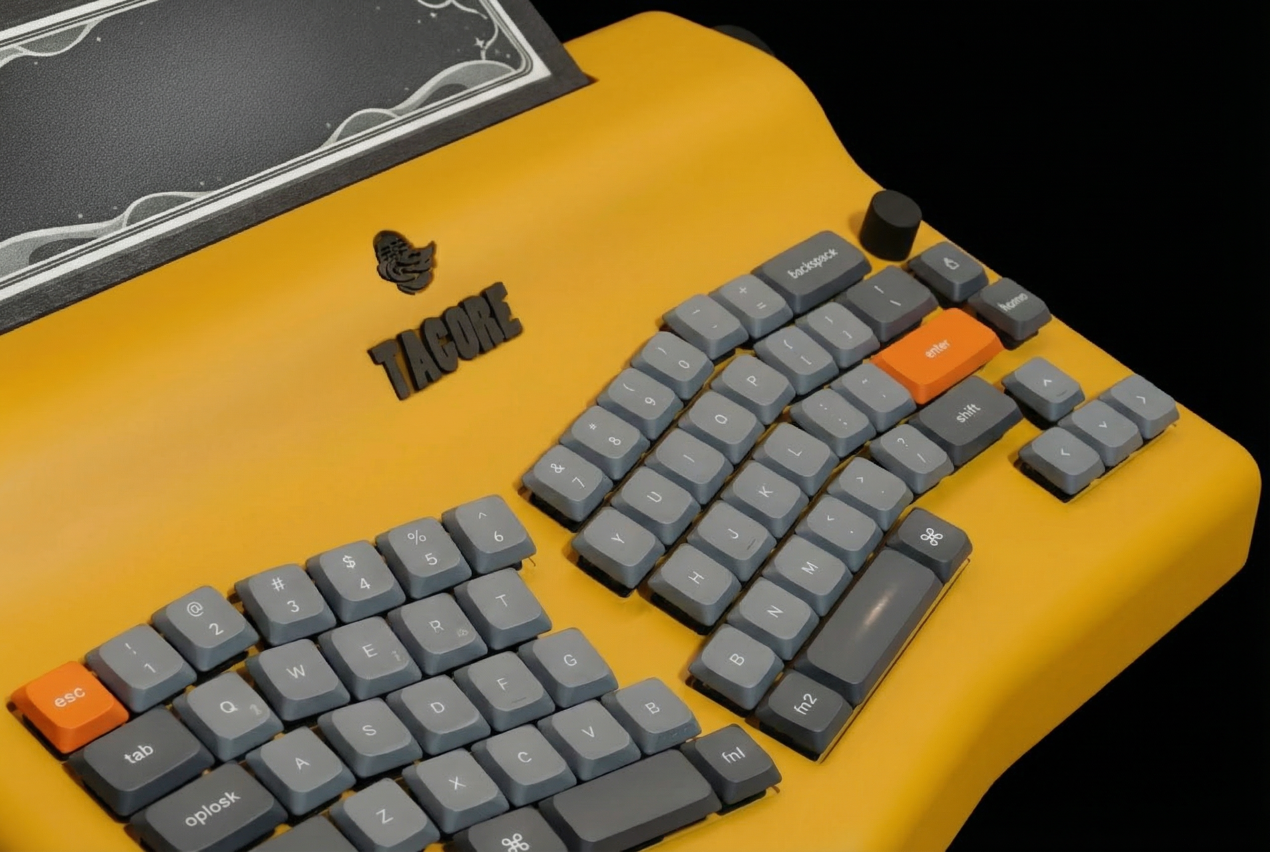 Layout: split ergonomic Alice layout Ergonomics: inward angle for relaxed wrists and shoulders Switches: hot swappable mechanical; factory fitted tactile low force; accepts 3 pin and 5 pin MX style Keycaps: sculpted high contrast PBT with dye sub legends Support: integrated palm rest and two stage adjustable typing angle Quick keys: dedicated save; focus mode; AI assist |