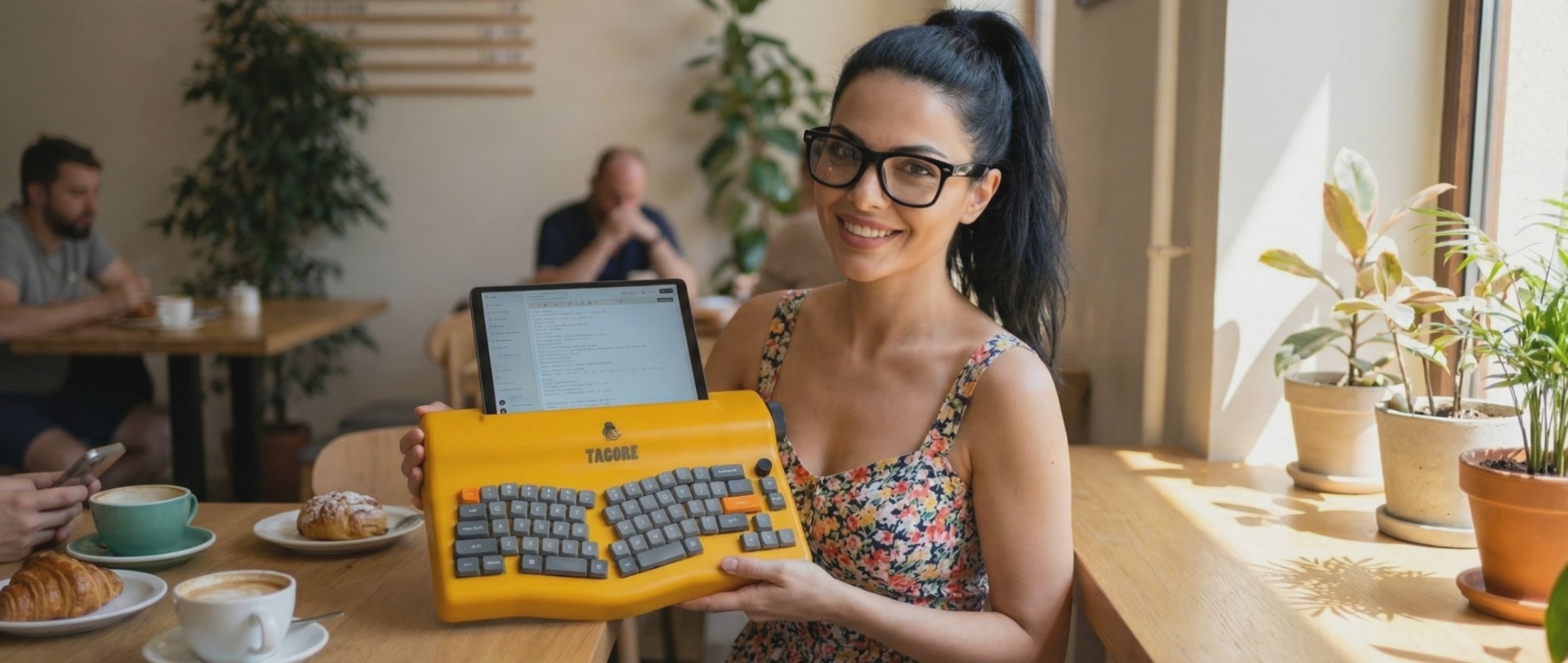 Battery: 5500 mAh internal rechargeable Runtime goal: more than 20 hours continuous typing with WiFi off; more than 7 days standby Charging: USB-C fast charge |
